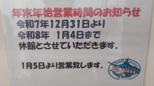 大洗カジキミュージアムは、令和7年12月31日より令和8年1月4日まで休館とさせていただきます。